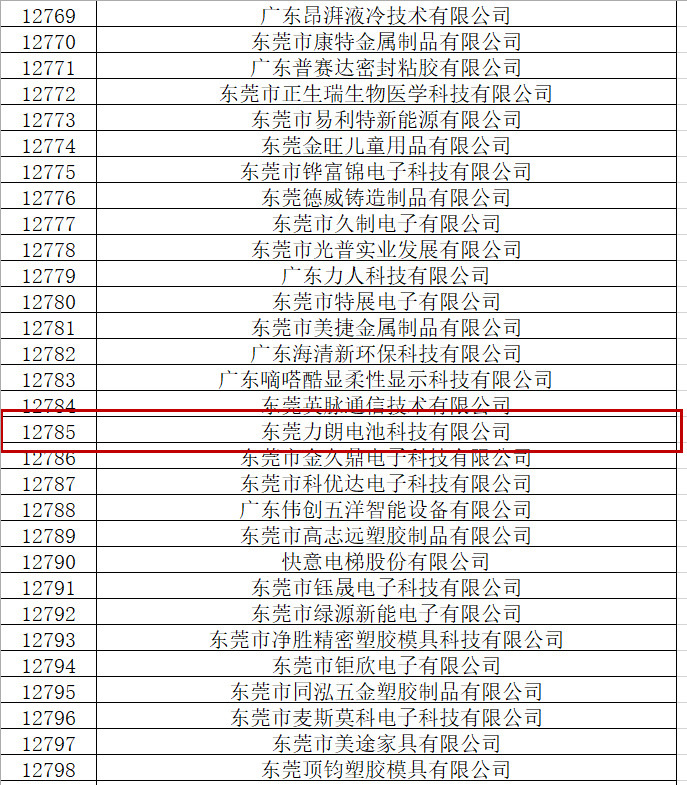 11月23日,廣東省工業(yè)和信息化廳公布了2022年創(chuàng)新型中小企業(yè)名單。經(jīng)過企業(yè)自評(píng)、地級(jí)市初審和復(fù)審,經(jīng)省政府批準(zhǔn),東莞力朗電池科技有限公司憑借在鋰電池技術(shù)上的不斷探索和創(chuàng)新,被認(rèn)定為廣東省“2022年創(chuàng)新型中小企業(yè)”。